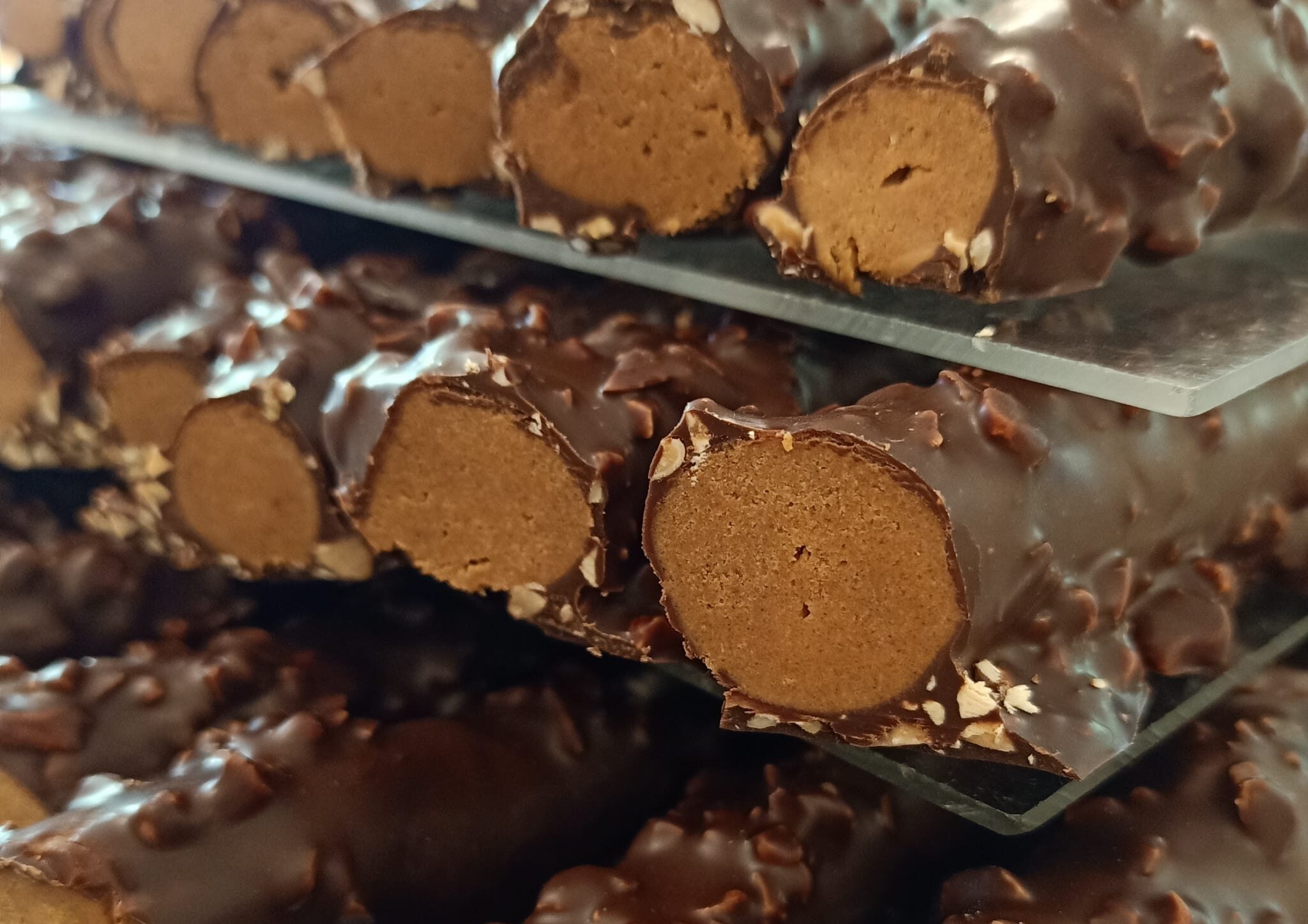 El producte estrella de la casa! Fetes amb praliné 100% ametlla marcona i un perfum de cafè.