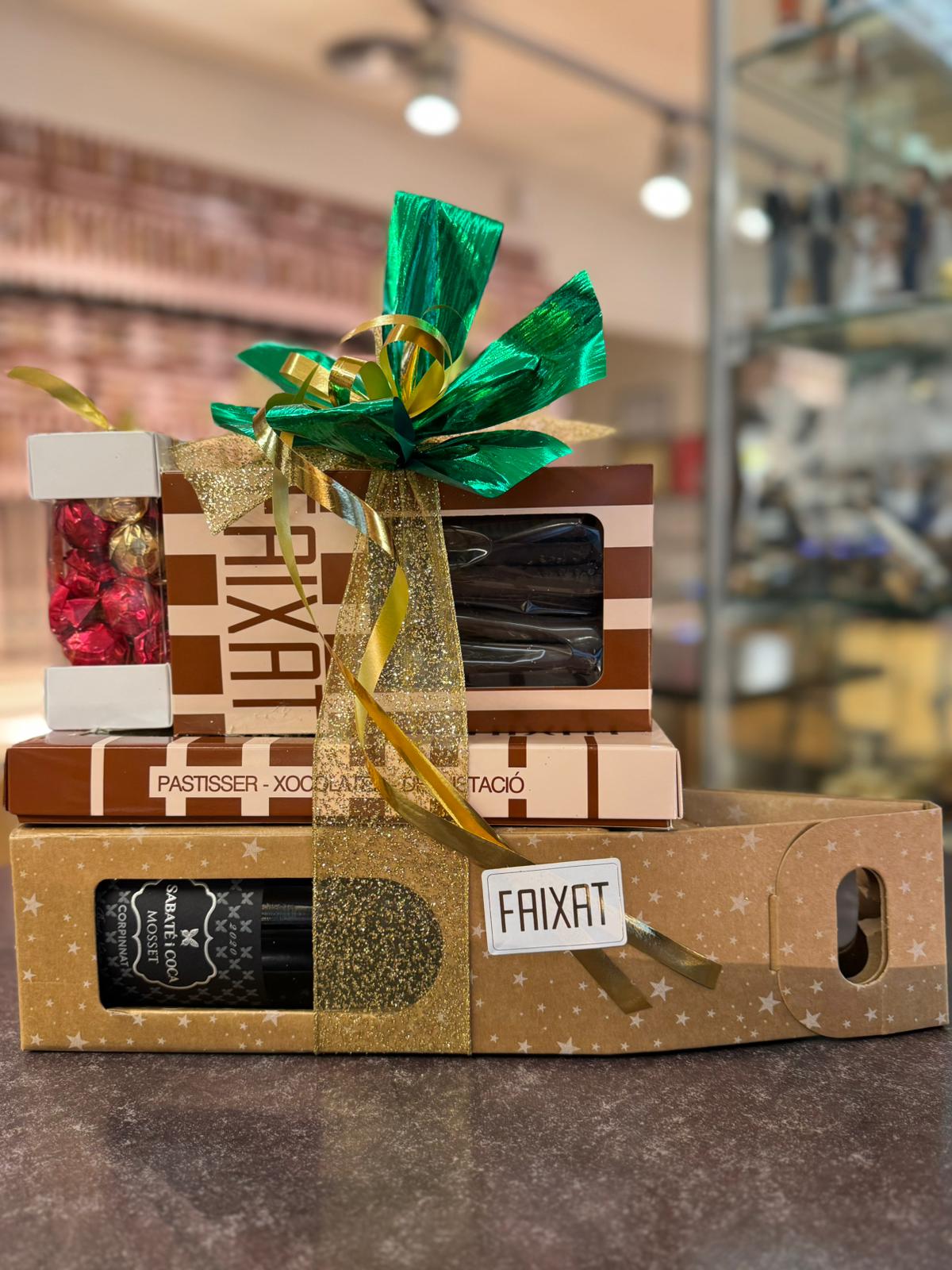 -Barra de torró gran a escollir entre: Alacant, o Xixona, o crema cremada, o boletes, o xoco avellanes, o trufat sense alcohol.