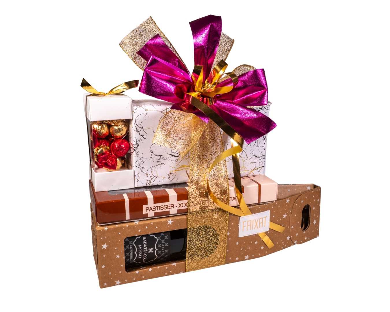 -Barra de torró gran a escollir entre: Alacant, o Xixona, o crema cremada, o boletes, o xoco avellanes, o trufat sense alcohol.