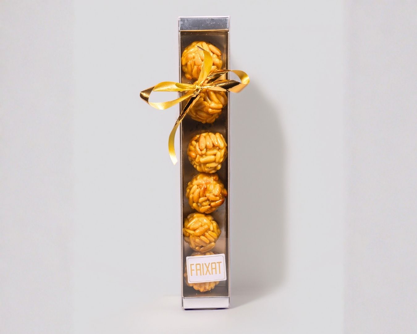 Ha estat premiat com a Panellet d’Or, Millor Panellet de Pinyons de Catalunya 2025.