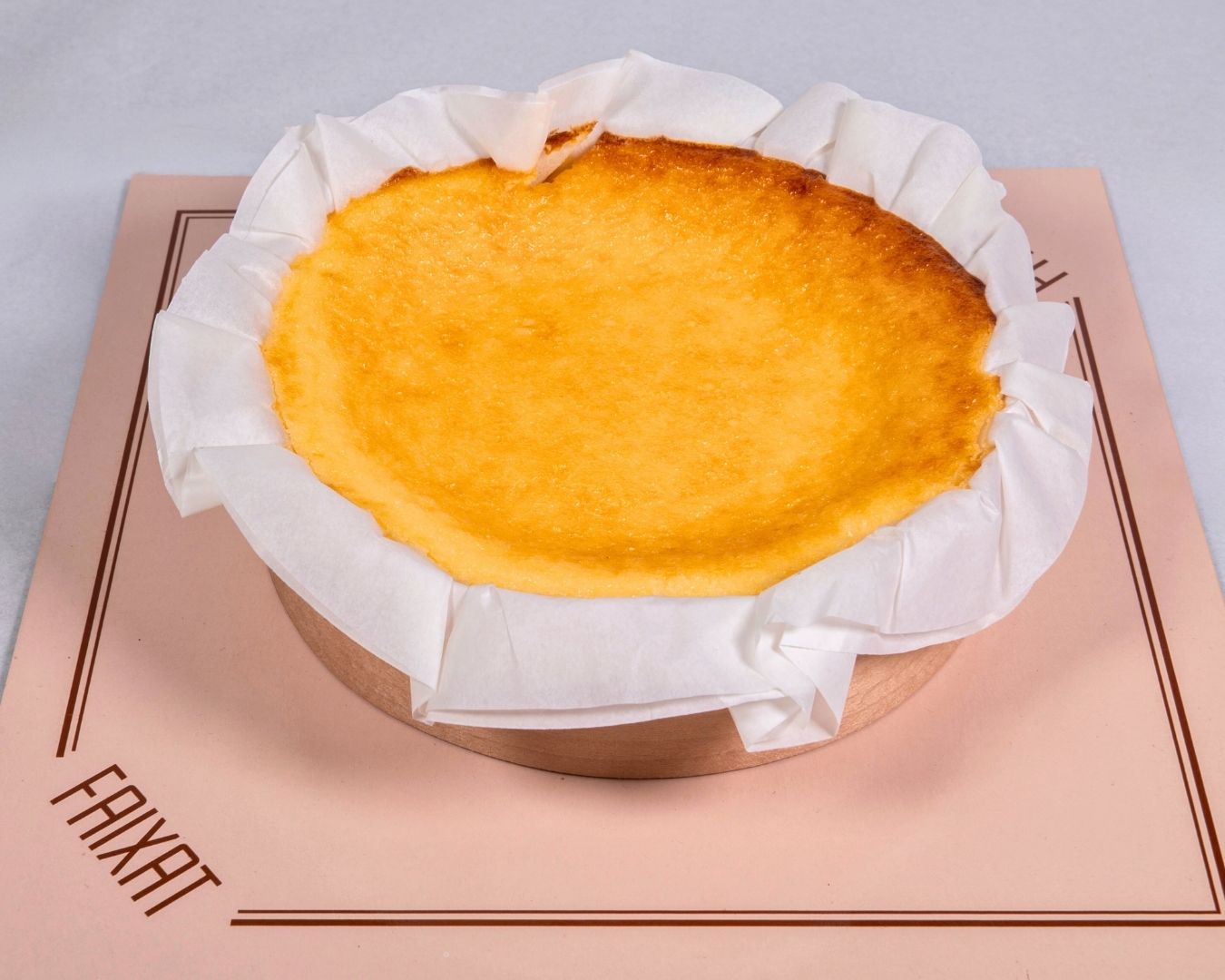 Cheesecake estil basc amb interior cremós i exterior torrat.