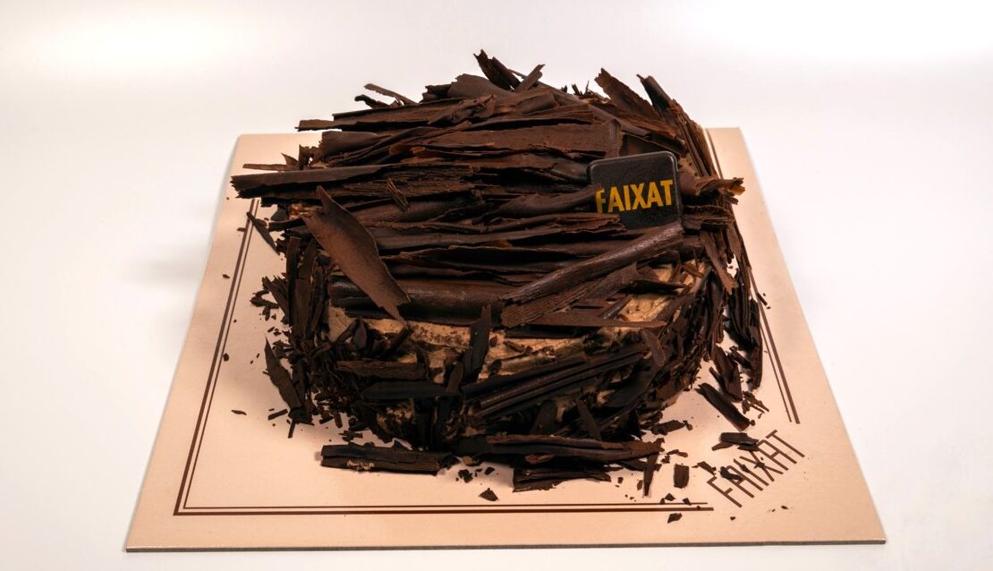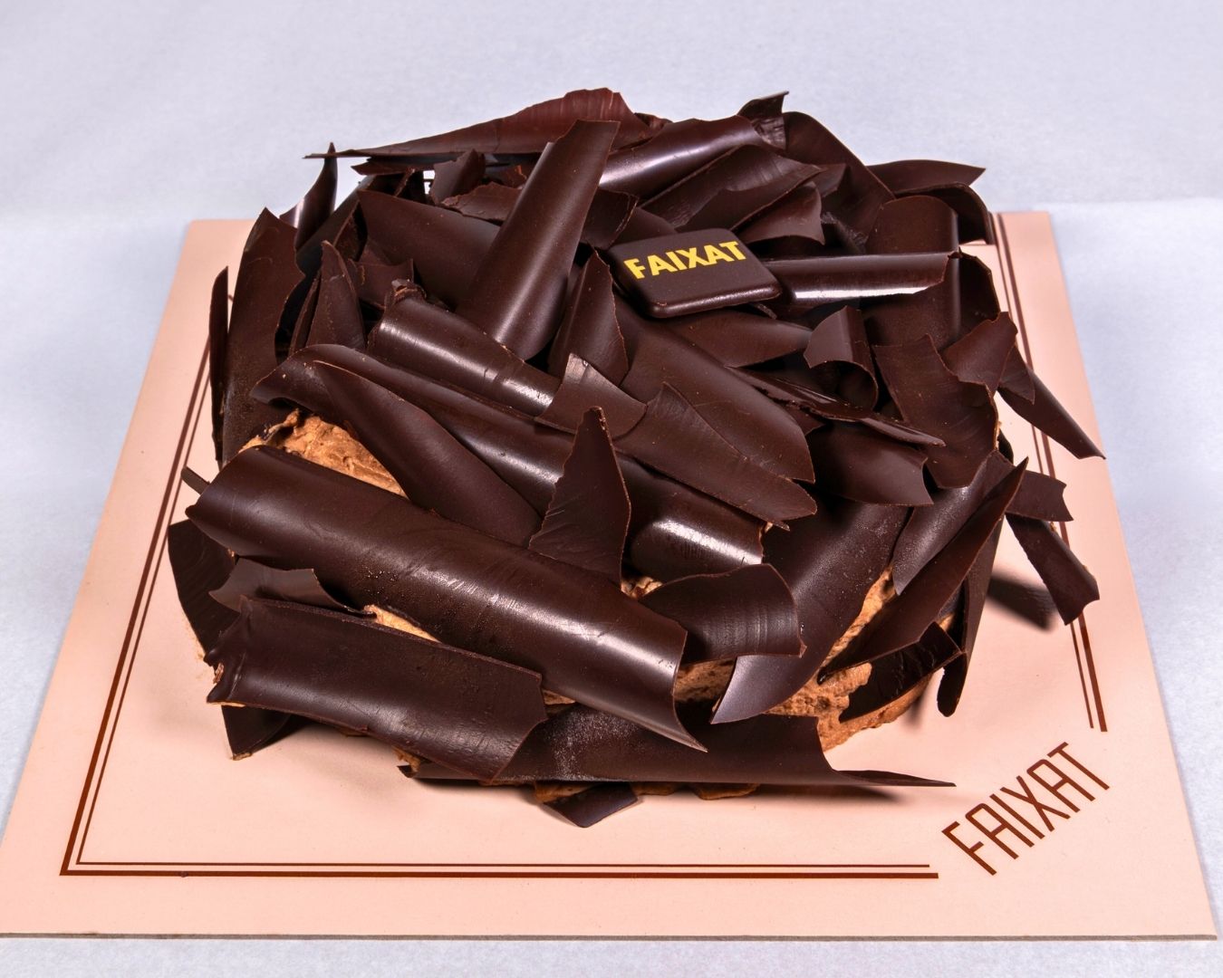 Una especialitat de pastisseria Faixat, un pastís de trufa recobert amb “virutes” o encenalls de xocolata.