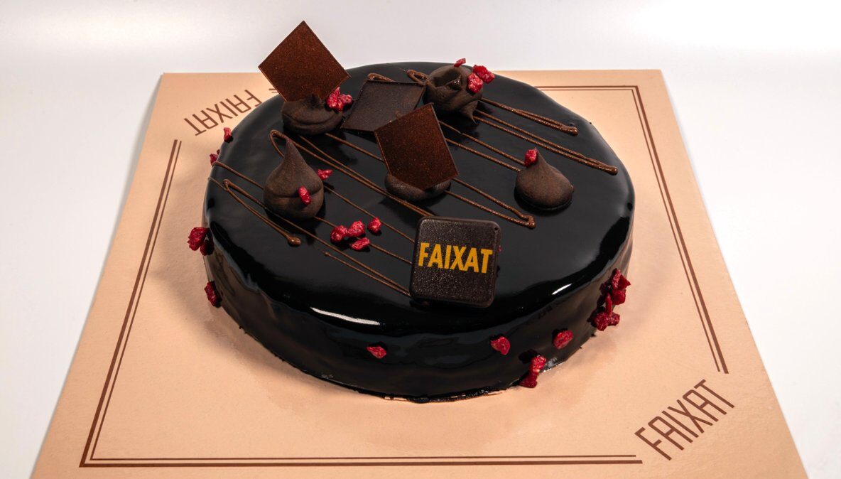 Sacher farcit amb fruits vermells, que contrasten amb la intensitat del pa de pessic de cacau i la ganache de xocolata negra.